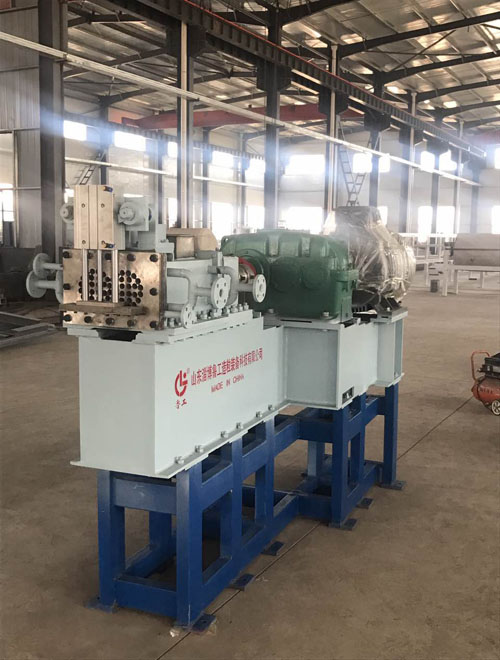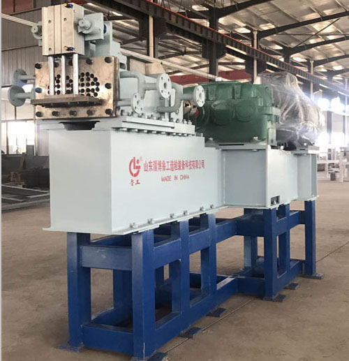 經(jīng)混合、捏和的濕物料或低軟化點(diǎn)(一般指小于50℃)物料在螺桿輸送、擠壓作用下,從機(jī)頭開孔模板擠出,再經(jīng)過干燥或冷卻得到顆粒成品,從而實(shí)現(xiàn)將粉狀產(chǎn)品改變?yōu)榫鶆虻念w粒產(chǎn)品的目的。