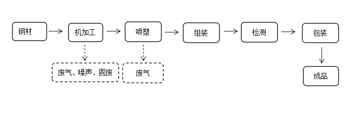 (1)機加工:將外購的鋼管、槽鋼、鋼板、角鋼按照規(guī)定的尺寸用銑床進行加工,該過程會產(chǎn)生少量的邊角料、顆粒物和噪聲。